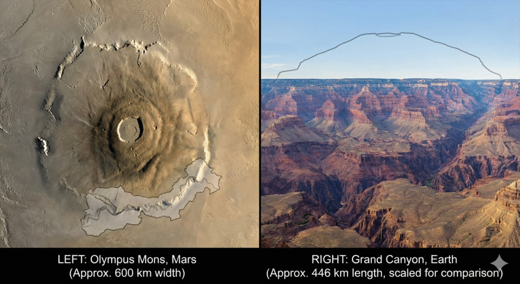 • A “Invisible” Mountain: Because the volcano is so wide and the curvature of Mars is so pronounced, if you were standing on its slopes, you wouldn’t realize you were on a mountain. The slope is so gentle (only about ) that the summit would be over the horizon.