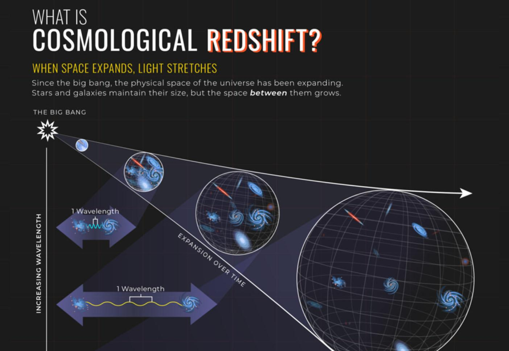This expansion was first discovered by Edwin Hubble who showed that galaxies move away from us and the farther they are, the faster they recede. This relationship is known as Hubble’s Law.