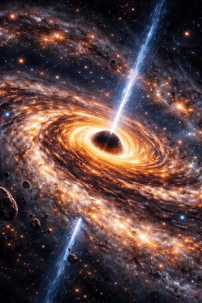 At the heart of nearly every large galaxy sits a supermassive black hole. In our own, that object is called Sagittarius A*. It does not “eat” the whole galaxy but its gravity influences the inner region and when material falls toward it, enormous energy can be released, sometimes outshining all the stars combined.