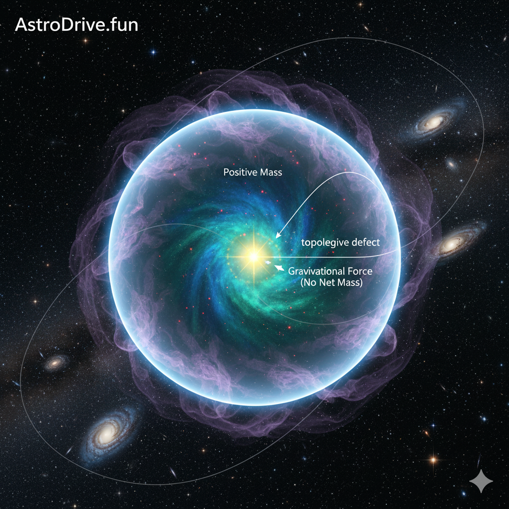 Lieu’s proposed solution involves the existence of shell like structures in the universe, formed in extremely dense, collapsed regions. These “shells” are composed of two layers: a thin inner layer with positive mass and an outer layer with negative mass. Crucially, these two masses would perfectly cancel each other out, resulting in a net total mass of zero for the shell. However, if a star were to sit on such a shell, it would experience a powerful gravitational attraction, pulling it towards the center of the shell. This effect would mimic the gravitational influence we currently attribute to Dark Matter, but without any net mass.