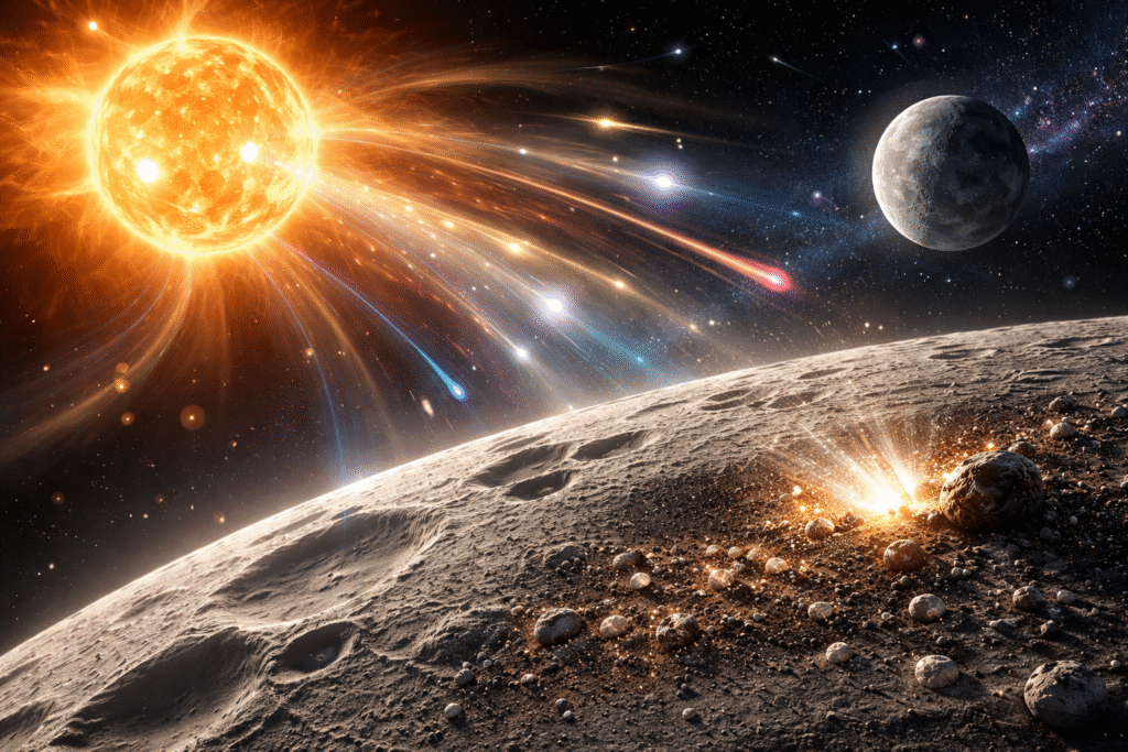 Over billions of years, solar weathering has transformed the Moon into the dark, dusty world we see today. Without protection from an atmosphere or magnetic field, the Moon’s surface continuously records the Sun’s activity. Each layer of lunar soil acts like a history book preserving evidence of how solar radiation and particles have shaped the Moon across geological time.