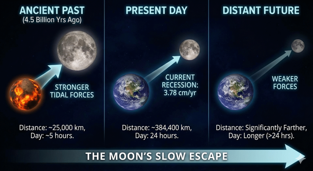 The “escape” of the Moon is a slow-motion cosmic dance that defines the history of our planet. While the Moon will never truly “break free” and fly into deep space, its departure is fundamentally changing Earth. We are living in a unique window of time where the Moon is at the perfect distance to exactly cover the Sun during a Total Solar Eclipse. In about 600 million years, the Moon will be too far away to cover the Sun completely, and total eclipses will become a thing of the past.