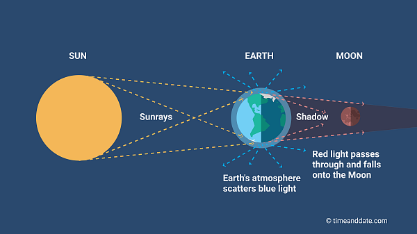 A lunar eclipse occurs when the Earth comes between the Sun and the Moon causing Earth’s shadow to fall on the Moon. Lunar eclipses can be total, partial or penumbral. During a total lunar eclipse, the Moon appears red due to the bending and scattering of sunlight through Earth’s atmosphere which is why it is often called a “blood moon.”