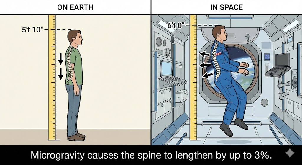 - The Return: As soon as an astronaut returns to Earth, gravity immediately begins “squishing” the spine back down.