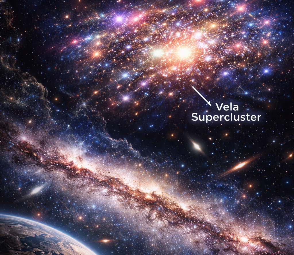 For years, astronomers believed they had a fairly complete map of nearby galaxies. But something was missing. Hidden behind the thick dust and stars of the Milky Way galaxy lies a region called the “Zone of Avoidance,” where visibility is extremely limited. It was here that scientists made a stunning discovery the Vela Supercluster, a gigantic collection of galaxies lurking much closer than expected.